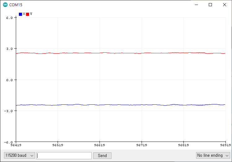 [ 시리얼 플로터 ]를 실행하면 다음과 같이 3축의 값을 얻을 수 있을 것이다.