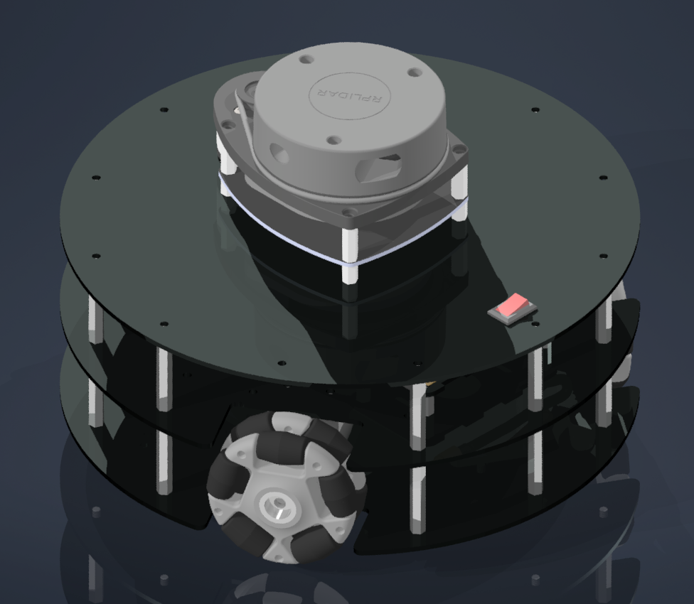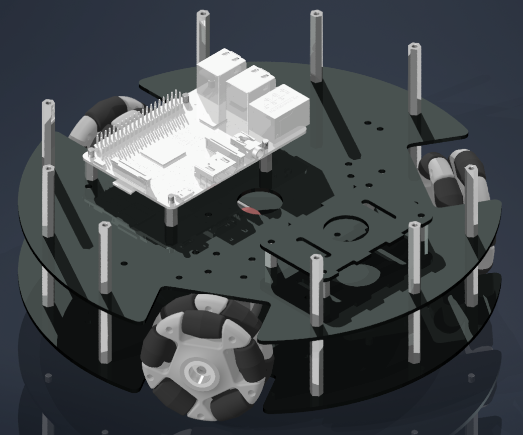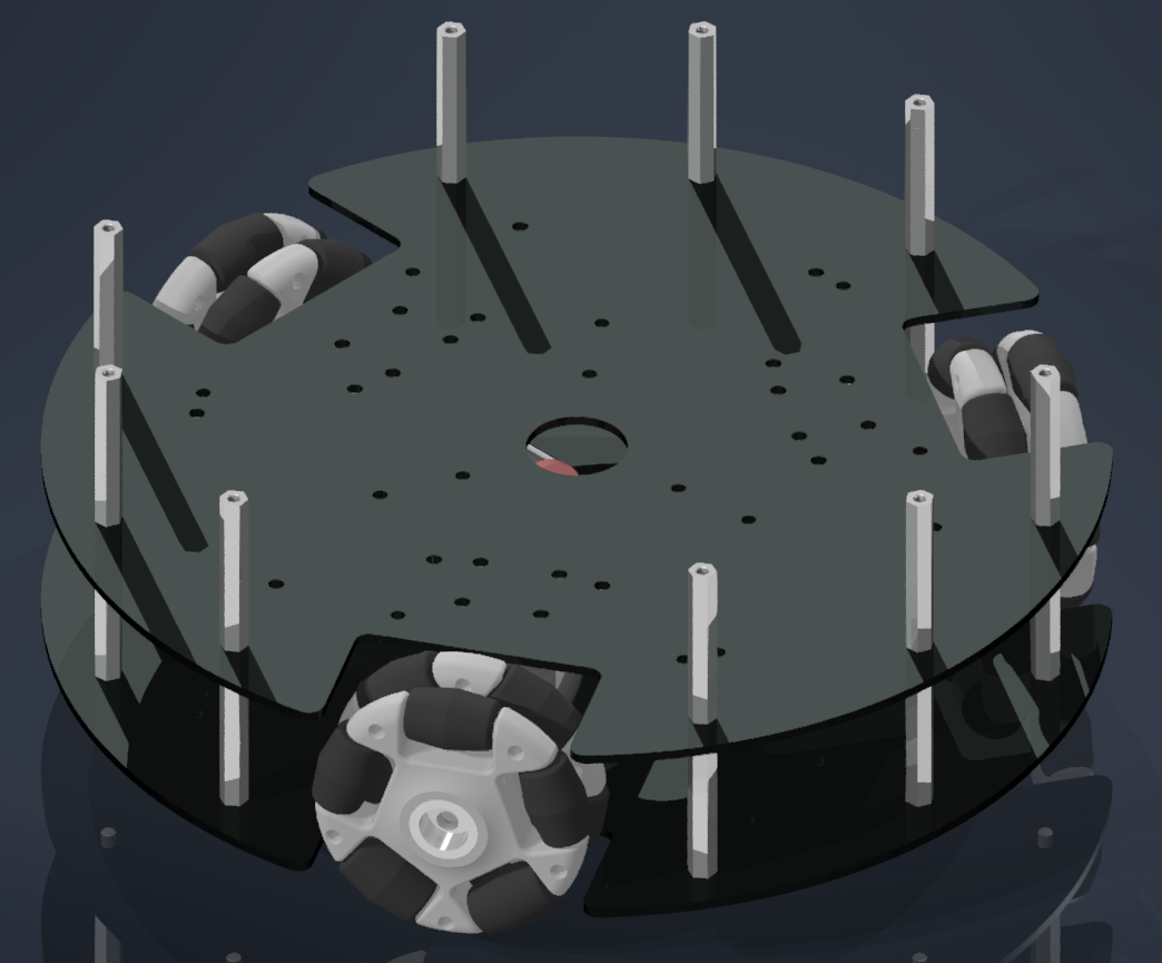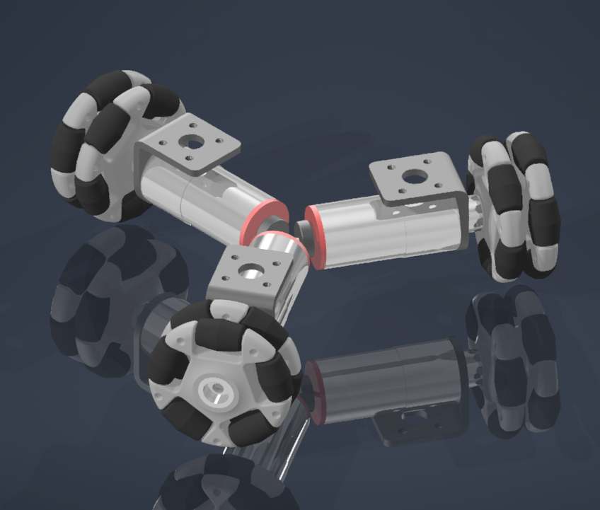하드웨어의 구조적인 목표는 옴니휠 3개를 이용하여 홀로노믹 움직임을 구현하는 것이다.