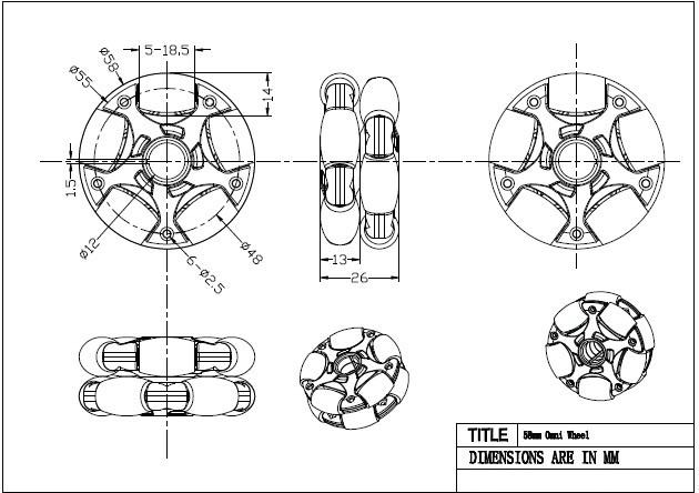 58mm 옴니휠을 주문하고, 이 역시 추루 프레임 제작 모델링에 사용하기 위해 모델링하였다.