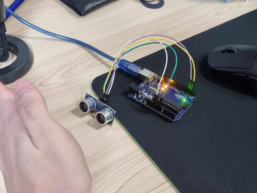 센서는 HC-SR04 초음파 센서를 mm 단위로 측정하여 C# 프로그램에 송신 및 동기화할 것이다.