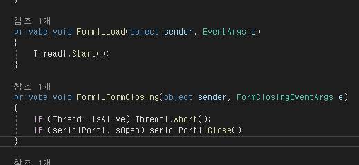 쓰레드 자동시작 및 종료를 위해서 폼을 열고 닫을 때 이벤트 코드를 작성해준다.
