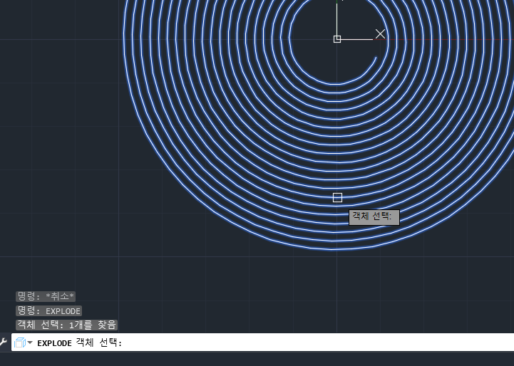 [ Explode ] 명령을 통해 객체를 2D의 조각조각된 객체로 분리화한다. 분리가 된 코일 객체들은 하나의 그룹화된 객체가 아닌 폴리선의 연결성분으로 이루어질 것이다.